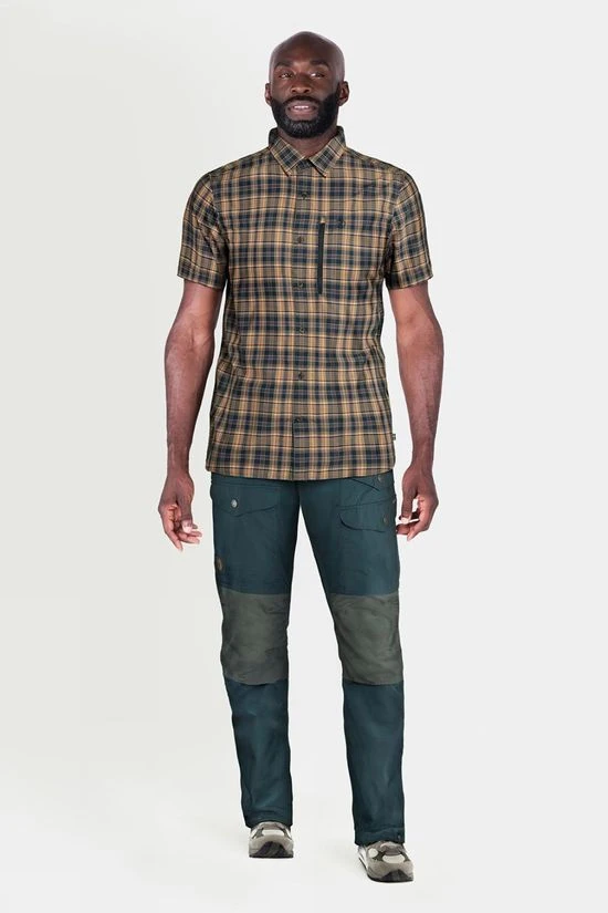 A lightweight, comfortable short-sleeved shirt for trekking and outdoor life in the summer. The Abisko Hike Shirt is made from a soft, functional fabric that wicks away moisture and feels cool against the skin. This is a convenient garment that takes little space in a pack – and proves practical when space is limited. Features include a well-fitting cut, vertical chest pocket with zipper and mesh lining, and a ventilation opening at the yoke to release excess heat.
